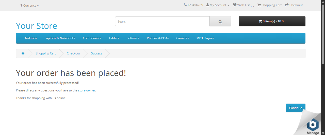 Then deberia visualizar el mensaje de confirmacion Your order has been placed!