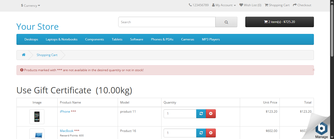 Then deberia visualizar los productos en el carrito: